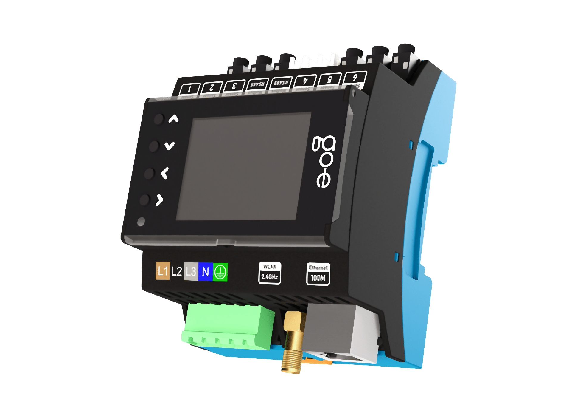 • go-e Controller: 4 Teilungseinheiten mit Farbdisplay, Tasten zur Menüführung und Helligkeitssensor